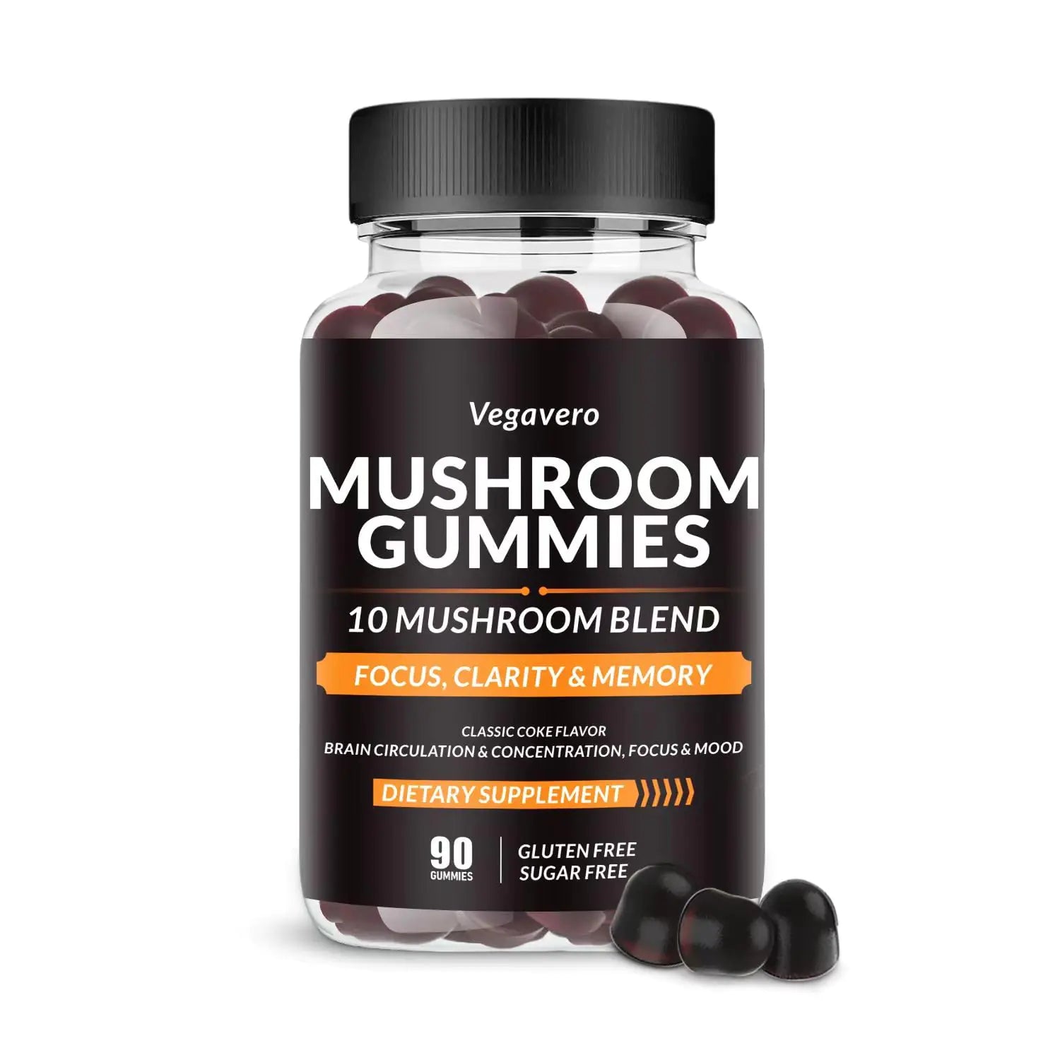 ["🍄10x MUSHROOM COMPLEX GUMMIES : including Maitake Shiitake Lions Mane Reishi Cordyceps Chaga Turkey Tail White Button Black Fungus Royal Sun Extract,as well as the added benefits of lions mane and ashwagandha,Support overall health and wellness. The combination of these mushrooms in our gummies provides a powerful boost to your immune system as well as supporting mental clarity and focus." 💪MUSHROOM GUMMIES 10 BLEND OF BENEFITS : Our Mushroom Complex is packed in a potent blend that may promote Brain Function Immune System Support Increased Energy Focus & Memory Calming the Mood Relaxing and Removing the fog Healthy Mood & Heart Health. ✅BETTER THAN CAPSULES - With higher absorption than capsule products our mushroom supplement is easy to chew easy on the stomach and has a delicious Classic Coke taste. No more hard-to-swallow and bad tasting capsules! 🍬 SUGAR-ZERO GLUTEN-ZERO - Indulge in our delicious mushroom extract gummies without the added sugar providing 90 gummies per bottle. Without using artificial flavors or colors our natural strawberry flavored gumdrops are sure to please the palate with or without food. 🧴90 GUMMIES MUSHROOM EXTRACTS : Enjoy 50% more chews per bottle of our mushroom supplement than similar products. You can extend your regimen by 2 weeks or strengthen your dosage on us! Kids enjoy a 3 month supply while adults rejuvenate for 45 days per bottle. 🧴POTENT 3000MG PER SERVING - Each serving of chewable mushrooms with lions mane supplement gummies packs 3000mg of wellness mushrooms and 300mg per mushroom extract. Enjoy a daily delivery of potent & safely functional mushrooms. 🧠ENHANCE YOUR BEAUTY WITH BRAINS - Lions Mane mushroom works as a brain support by enhancing your brain power and cordyceps mushroom in our mushroom complex gummies is the source of energy and anti-aging. 💪ADAPTOGENIC EXCELLENCE - With Reishi and Cordyceps in our mushroom supplements experience better stress management which translates directly to optimized energy levels. These adaptogenic mushrooms help your body adapt to stress and restore balance. 👨\u200d👩\u200d👧\u200d👦SAFE FOR ALL AGES - Our Raspberry flavor mushroom complex focus gummies replace the typical powder pills and capsules and are suitable and safe for kids as well as adults. 😋 Vegavero BRAND MUSHROOM GUMMIES - are carefully crafted to ensure purity safety and effectiveness. We use strict manufacturing processes and source only the highest quality ingredients to bring you the best possible product. In addition our customer service team is always available to answer any questions you may have and provide support.]
